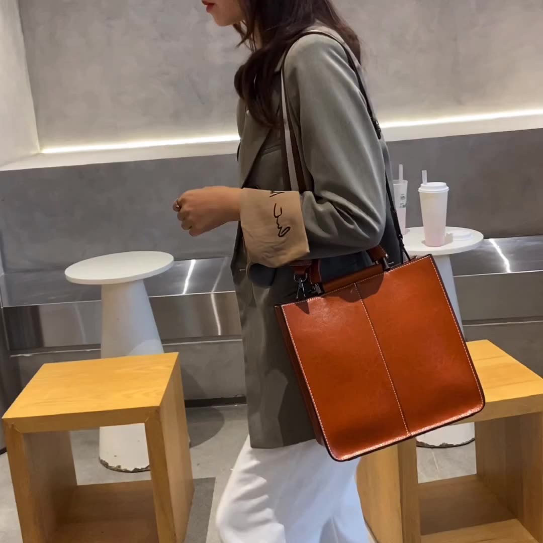 2025 Bag féminin Nouveau style épissé le sac d’épaule de sac pour femmes en cuir authentique à la mode European et Américain Hands Handsbag Guangzhou Trendy