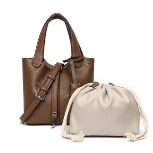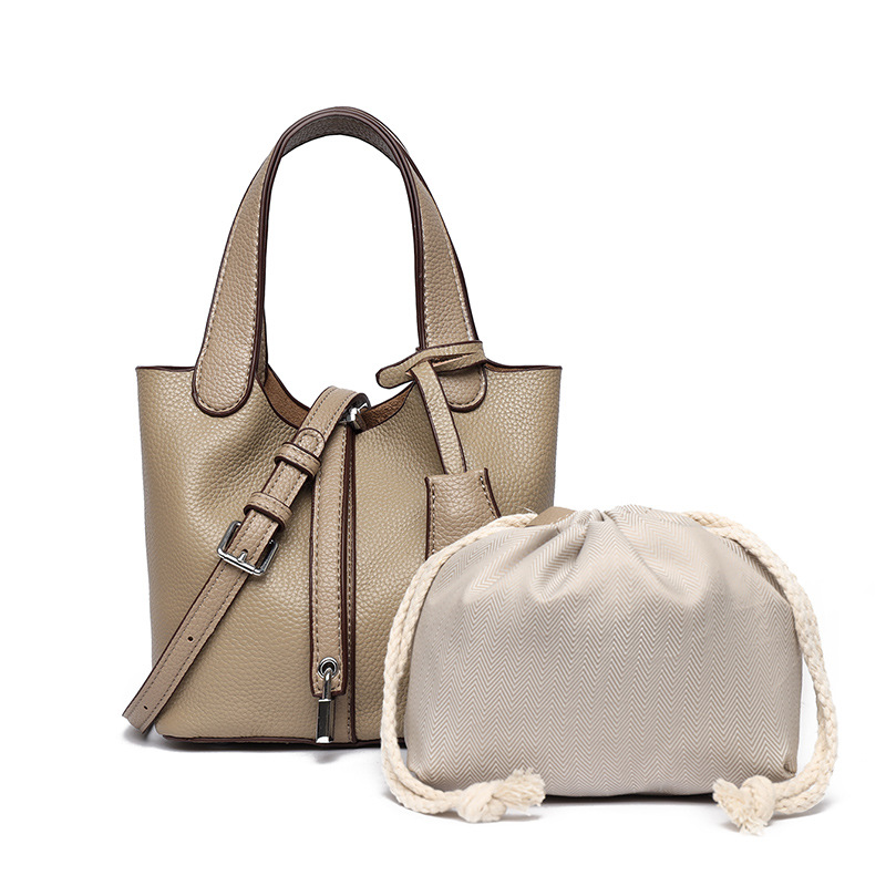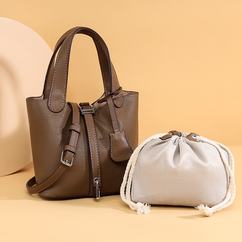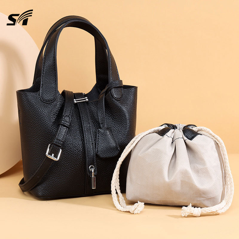 Bagure de sac à main en sac de godet en cuir en cuir authentique à carres de vache supérieure