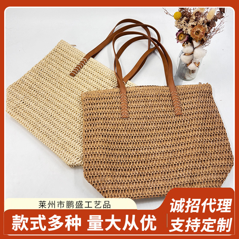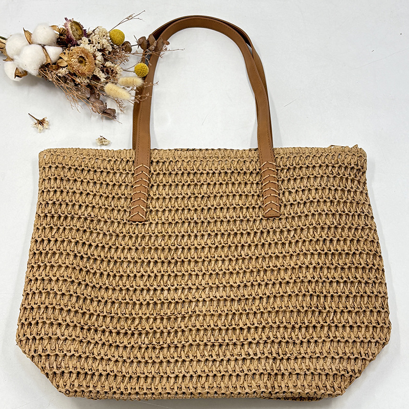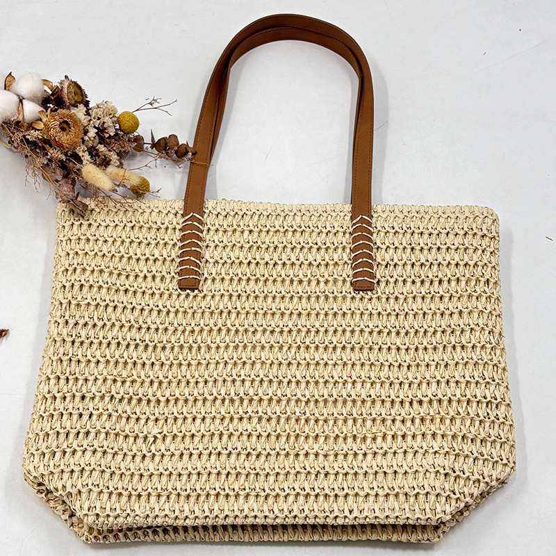 Fabricant en gros Couleur de contraste creux Sacs tressés Sacs pour femmes de la plage de vacances