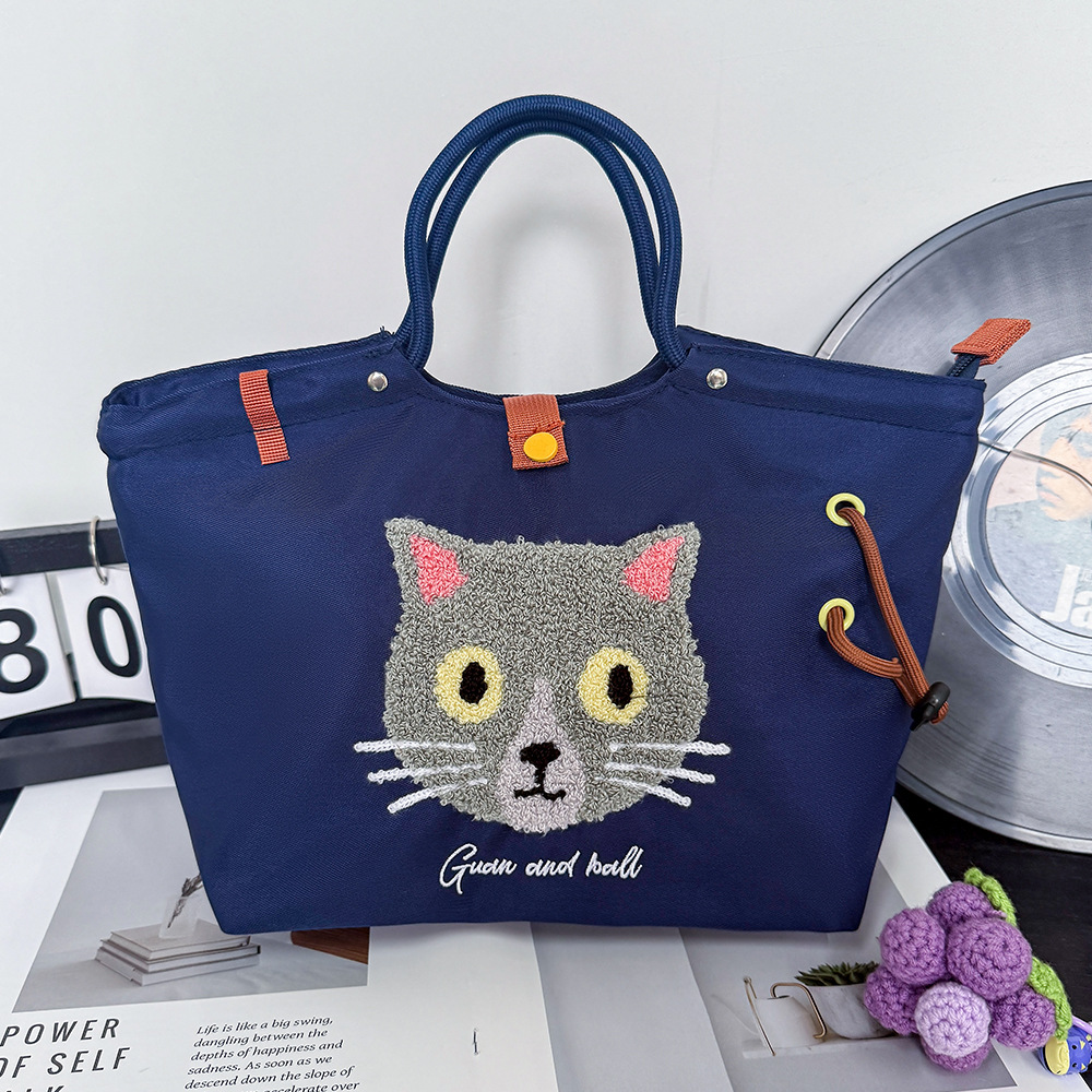 Ins Style Broidered Cat Oxford Tissu Hands Sac à main décontracté polyvalent sac à provisions respectueuses de l’environnement Sac d’épaule de grande capacité Sac pour femmes