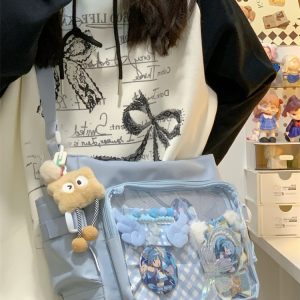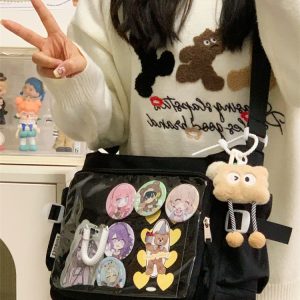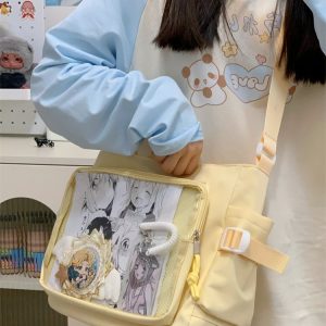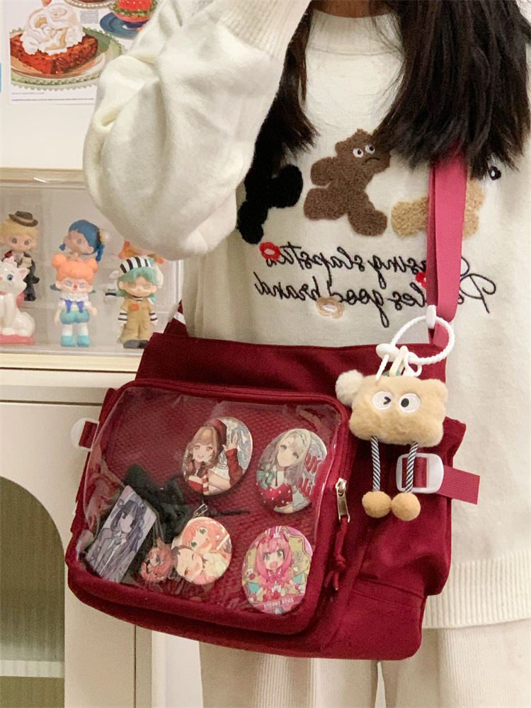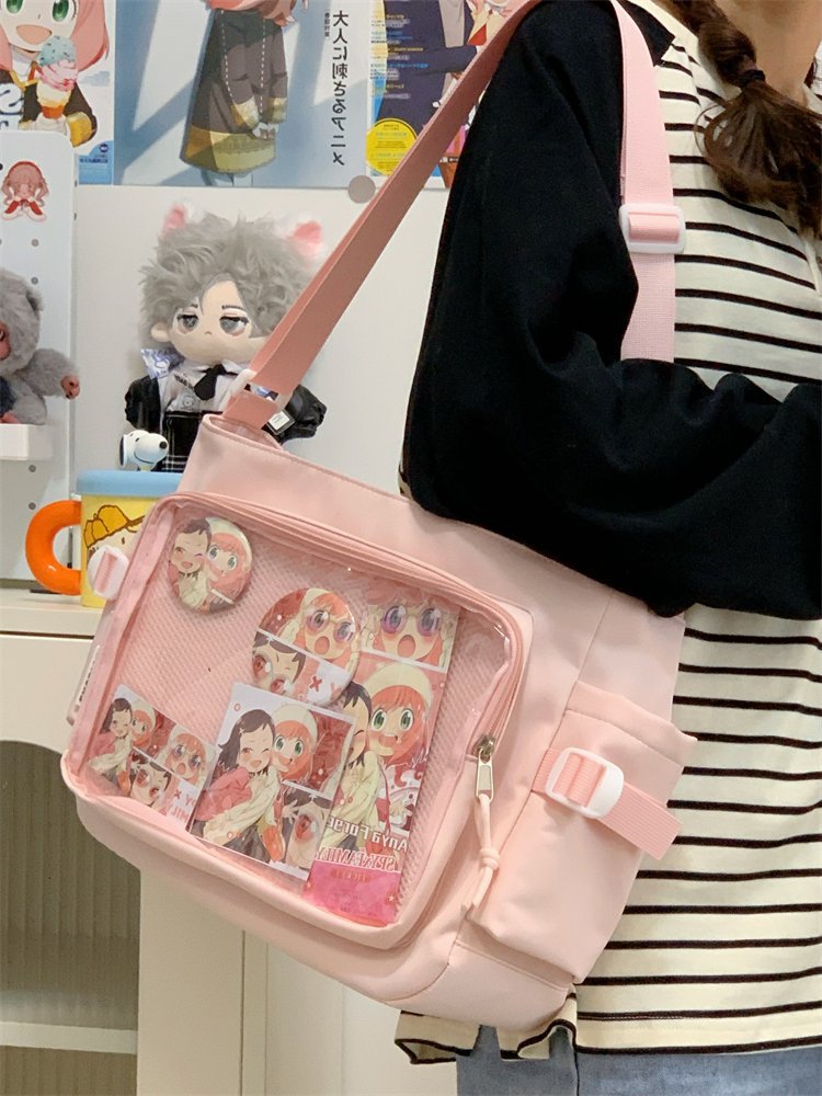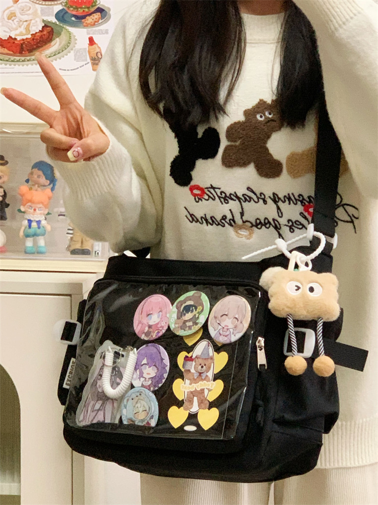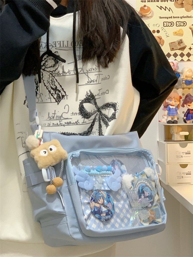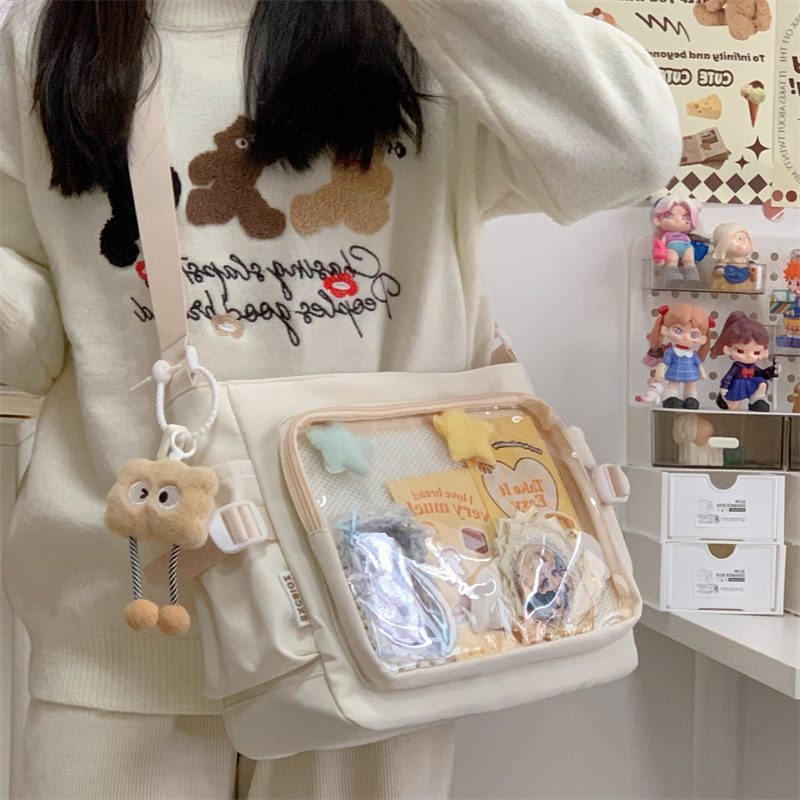 Japonais Ins Wind Transparent Bar Pain Pain Sac Campus polyvalent grande capacité Sac à corps croisé à un seul épaule