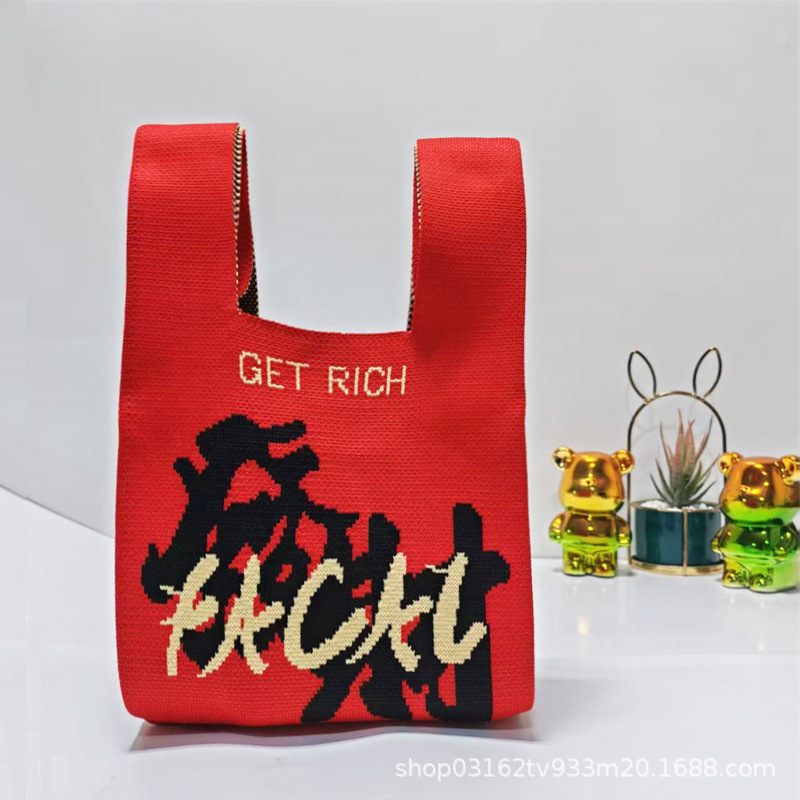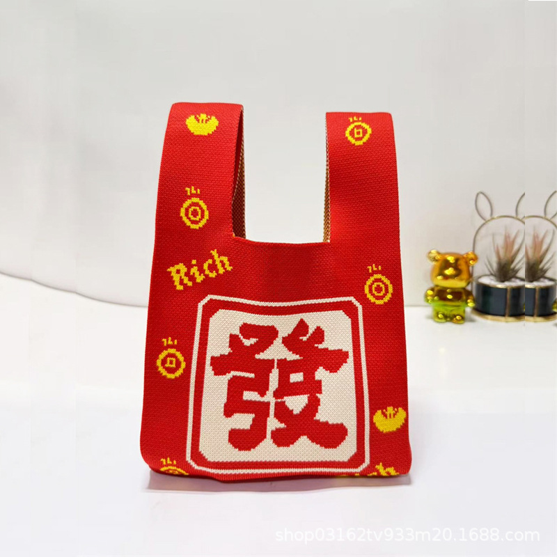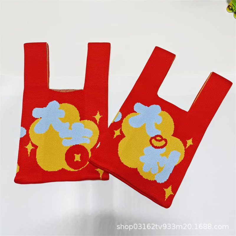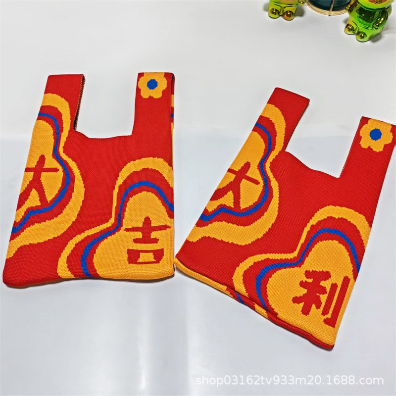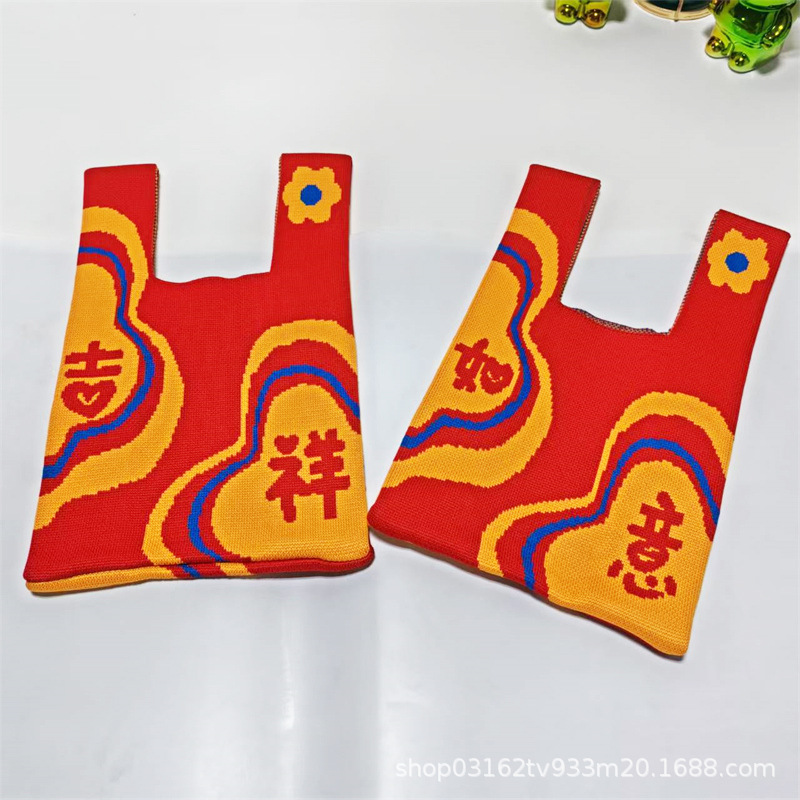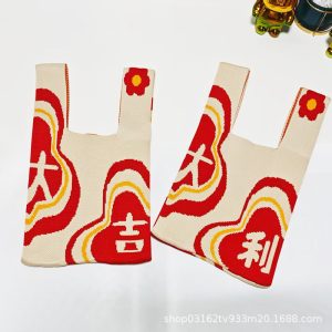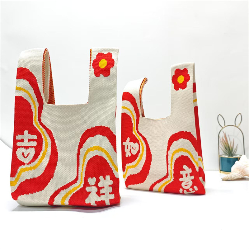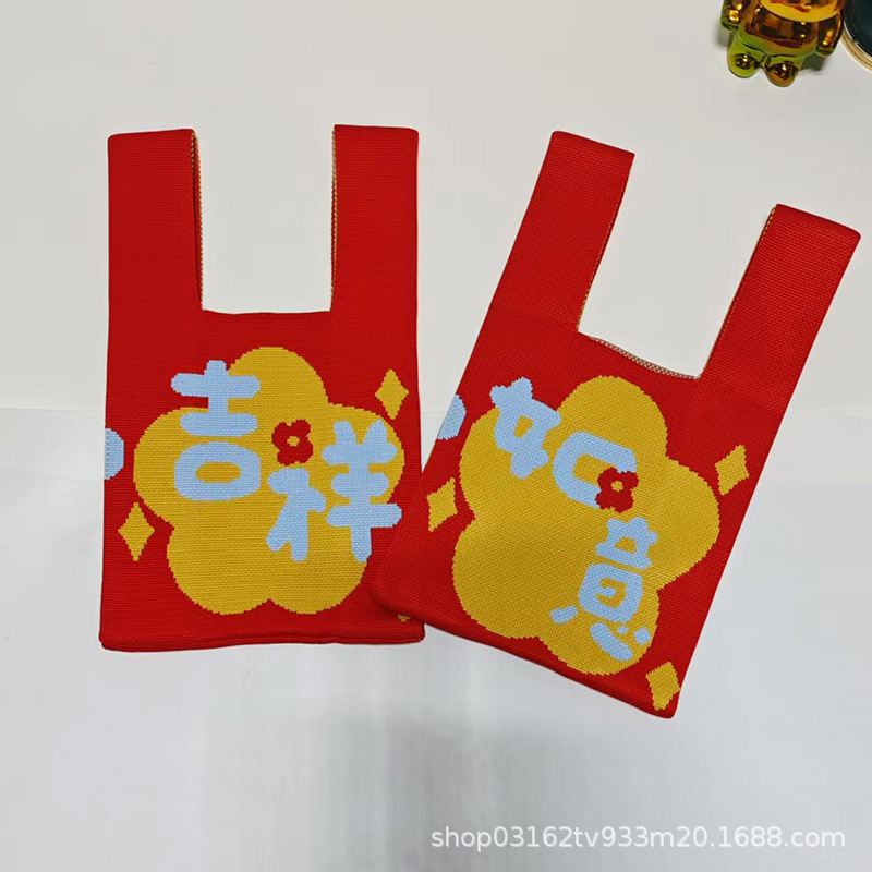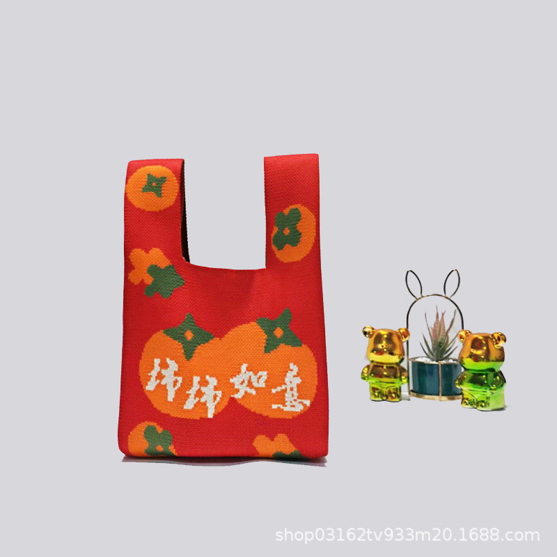 Nouvel An Persimons et kakis et rouges Festive Pack de poignets festives Souvrer des sacs à main de mariage Dands à la maison Sacs tricotés