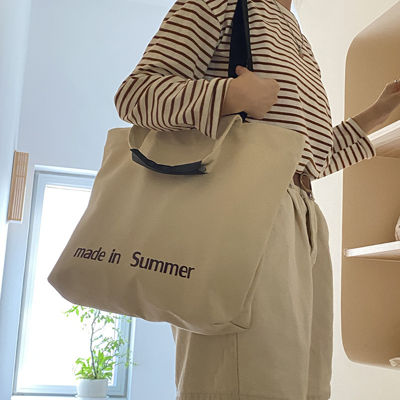 Sac à bandoulière classique de grande capacité pour femmes simples lettre d’impression sac en toile décontractée sac à main