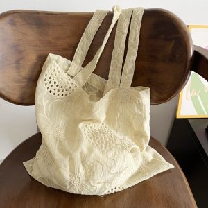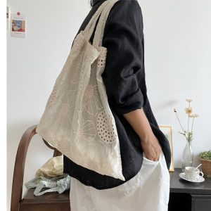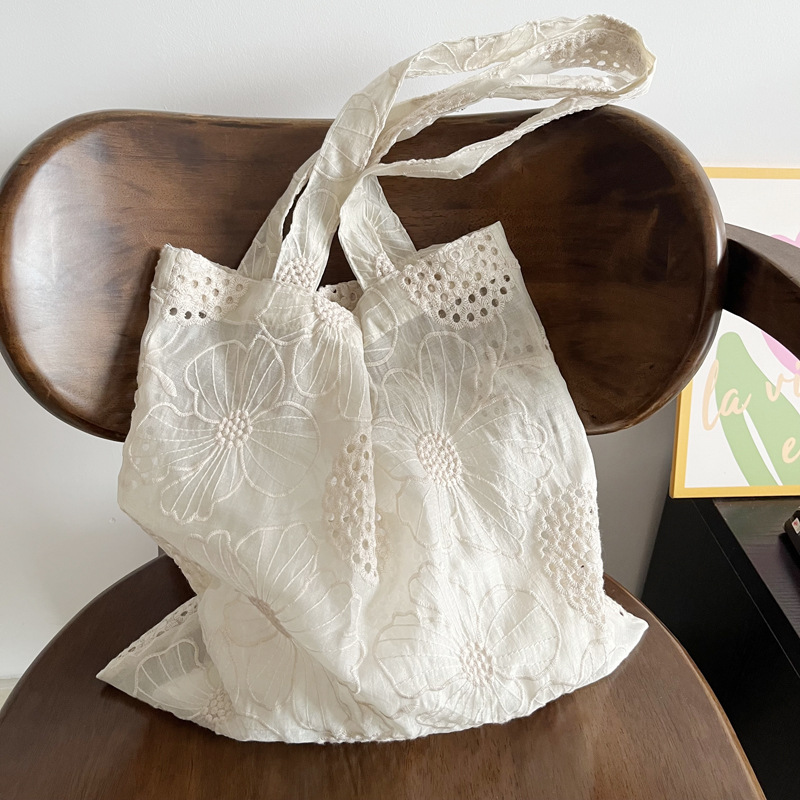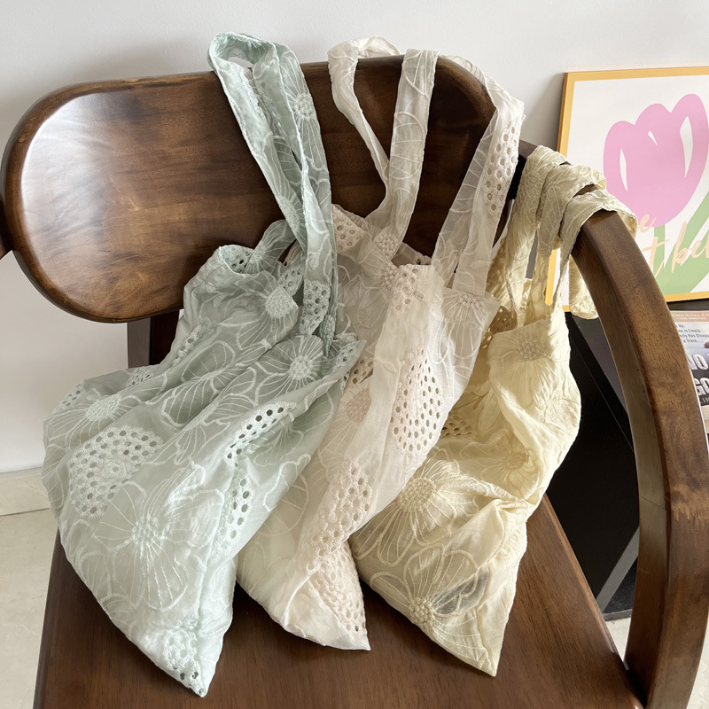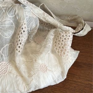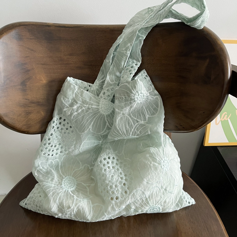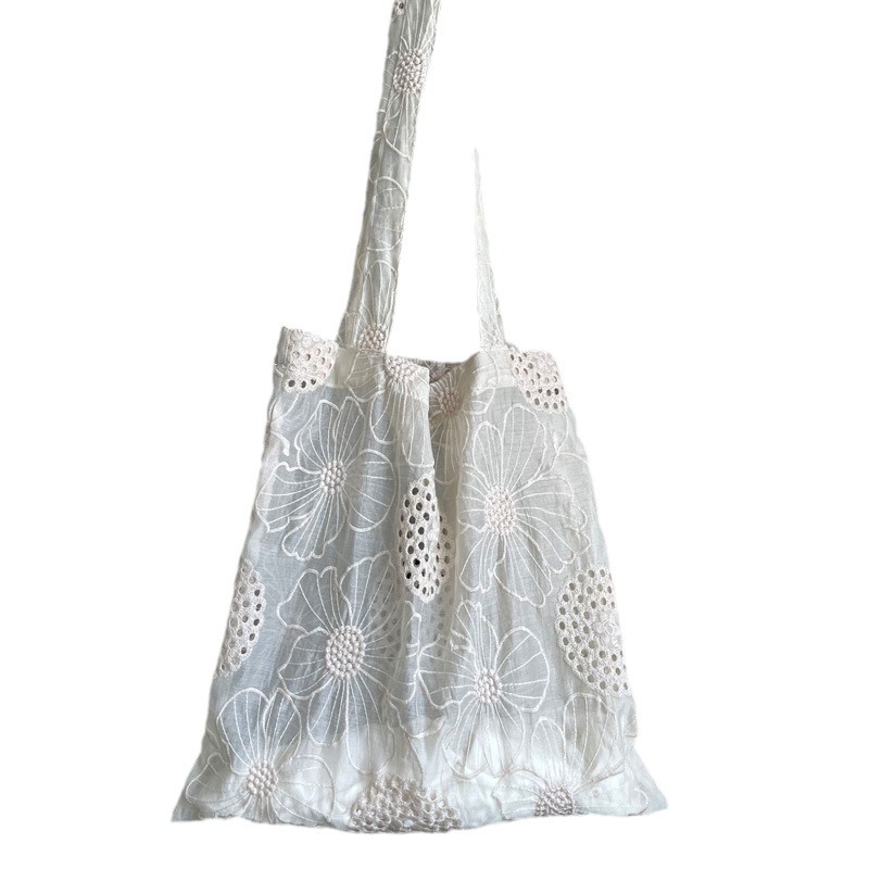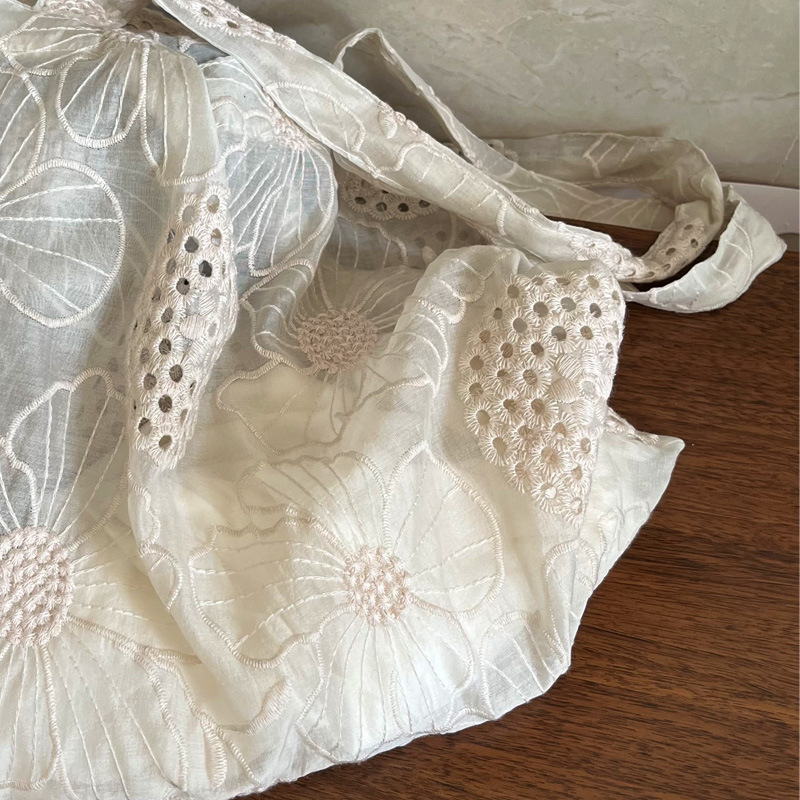 Sac à bandoulière de broderie creuse de l’industrie lourde littéraire française Sac en tiansi nylon Sac à tempérament romantique doux sac semi-transparent sac