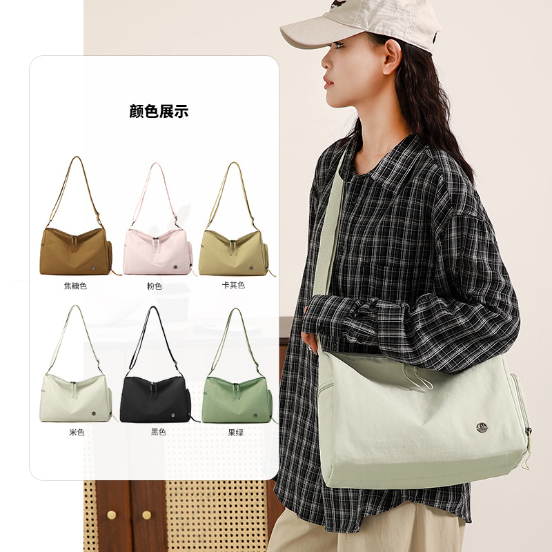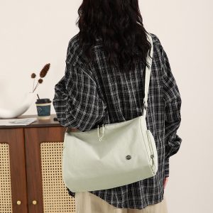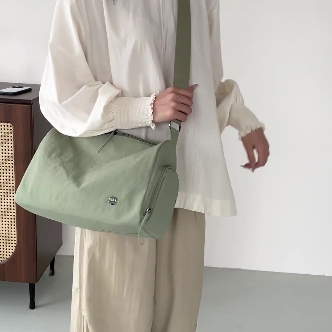 Sac à bandoulière de rangement de grande capacité pour les femmes Couleur solide Sac d’oreiller Boston Nylon Léger et Sac à bandoulière littéraire polyvalent