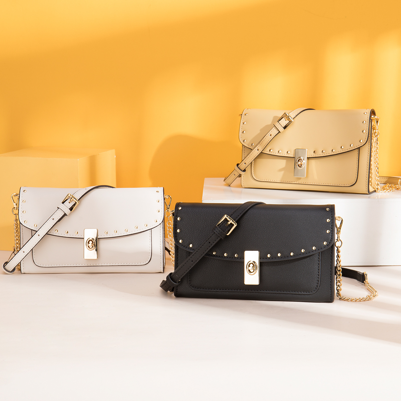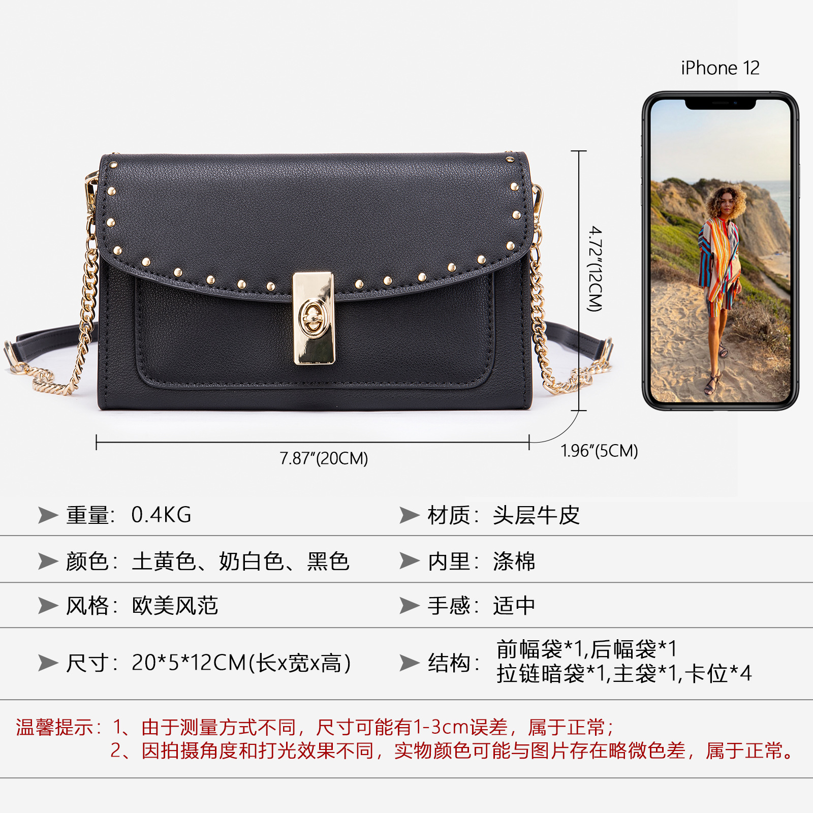 Sac à bandoulière de serrure de serrure haut de gamme européenne et américaine Sac à bandoulière en cuir authentique Nail polyvalent Personnalité Small Squle Bag Sac en gros en gros