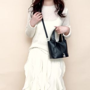 Bagure de sac à main en sac de godet en cuir en cuir authentique à carres de vache supérieure