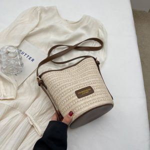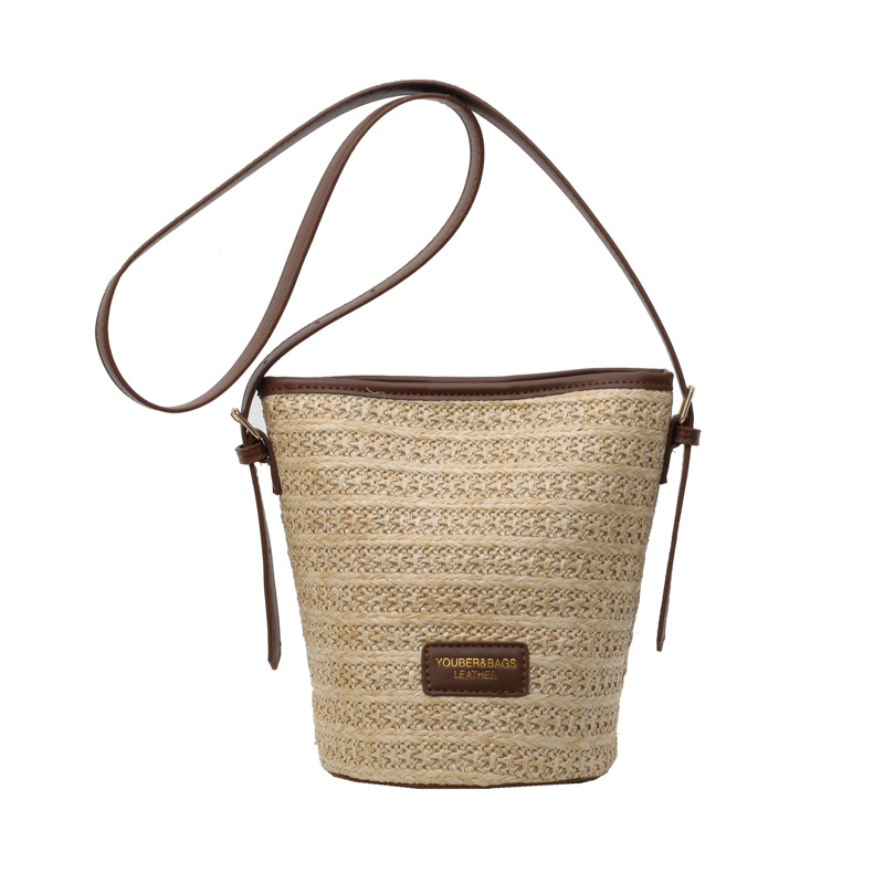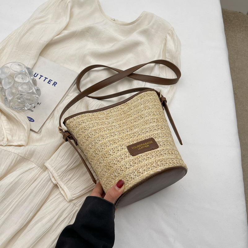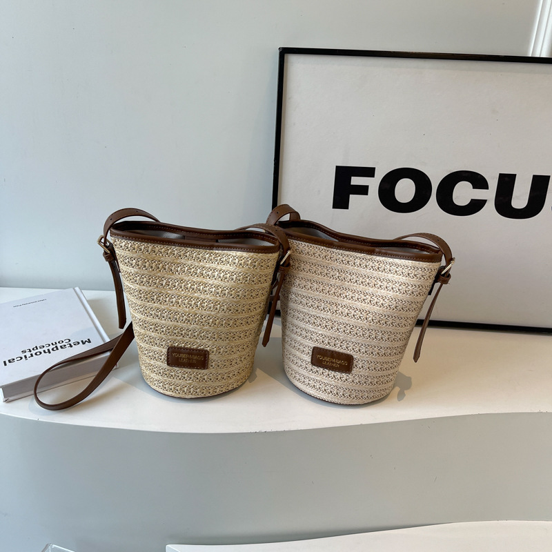 Sac à main tissé paille 2024 Été Nouveau sac de seau de plage décontracté pour femmes Texture de niche Sac à bandoulière à un épaule pour femmes