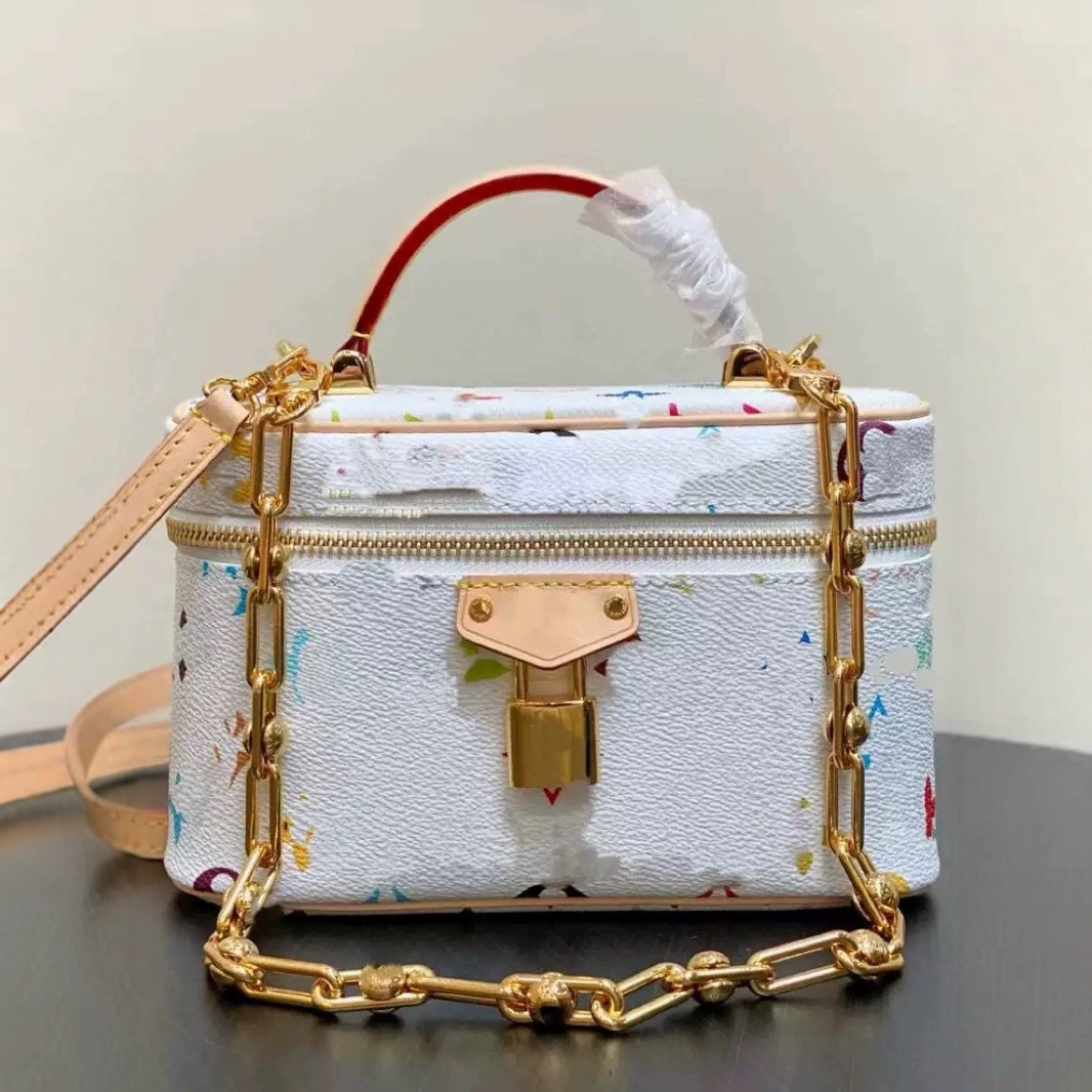 Sac de maquillage de vanité à puce de code haute version Sac à chaîne de couleur contraste de la boîte de couleur contrastée sac à bandoulière portable