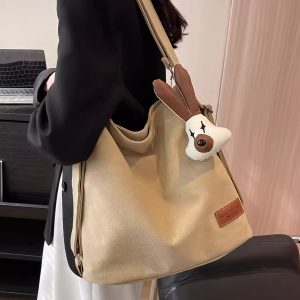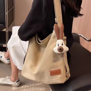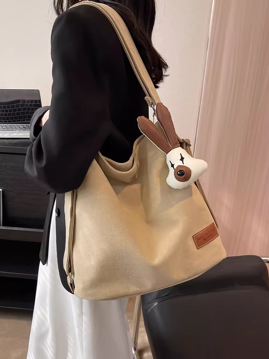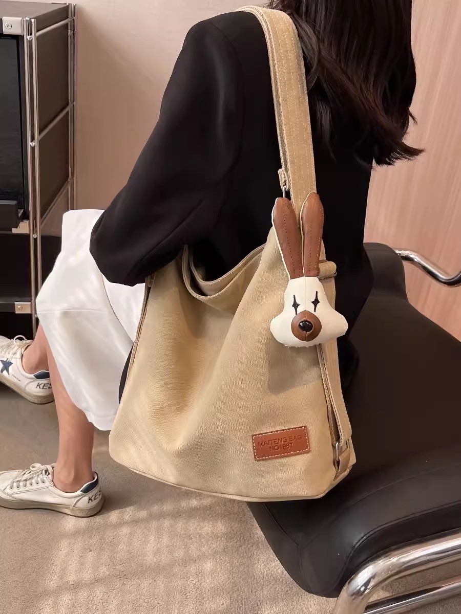 Sac sur toile grande capacité Sac à épaule artistique et polyvalente pour la femme Sac à notation