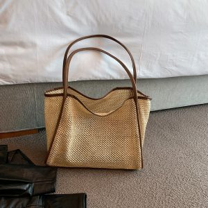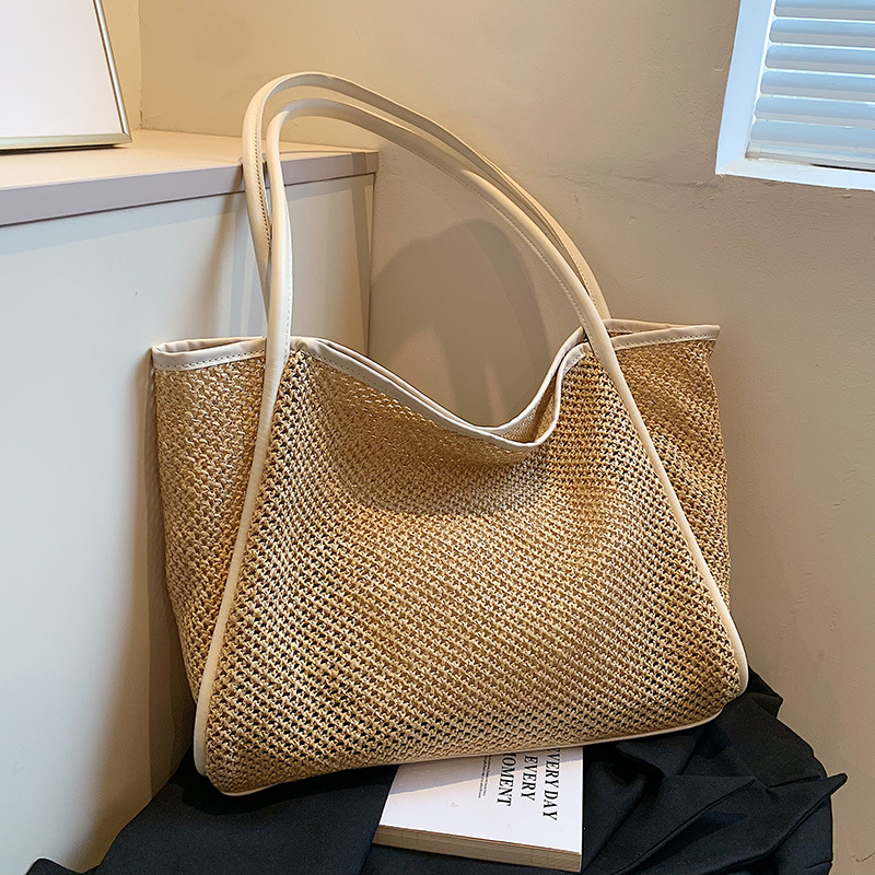 Sac tissé de paille de tissage pour les femmes de grande capacité 2025 Nouveau sac de plage à un épaule de printemps et d’été